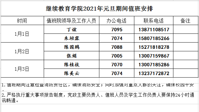 william威廉亚洲官方2021年元旦期间值班安排