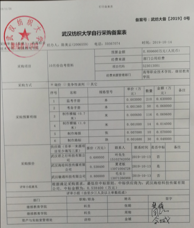 2019年10月份自学考试资料询价表