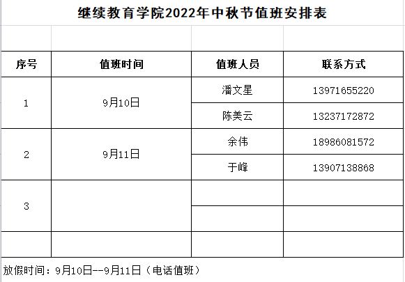 william威廉亚洲官方2022年中秋节值班安排表