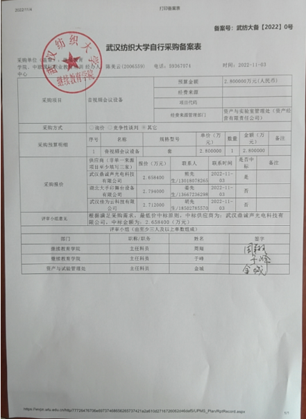 william威廉亚洲官方自行采购备案表(音视频会议设备)
