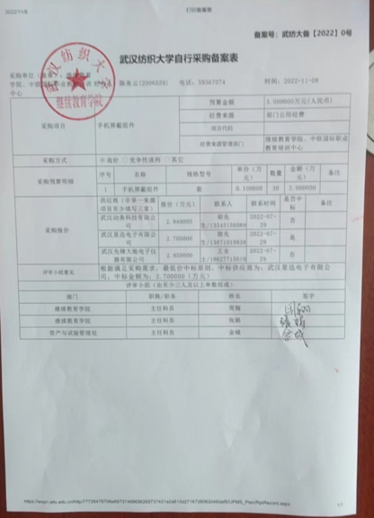 william威廉亚洲官方自行采购备案表(手机屏蔽组件)