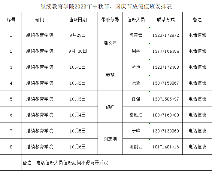 william威廉亚洲官方2023年中秋节、国庆节值班安排