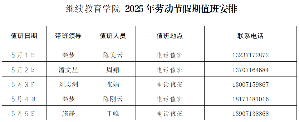 william威廉亚洲官方2025年劳动节假期值班安排
