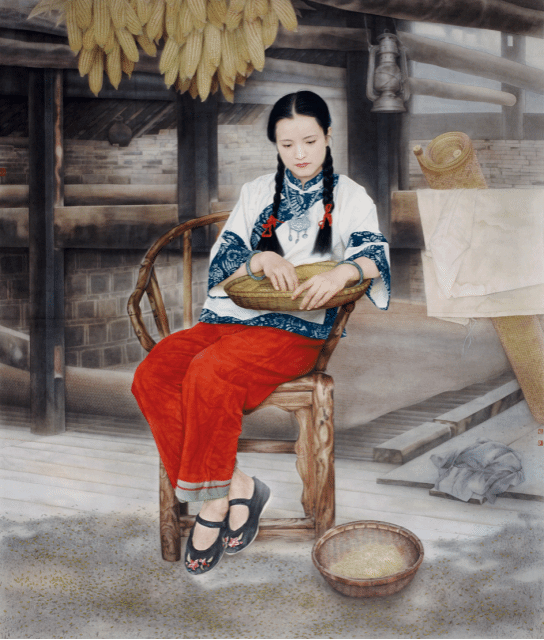 李乃蔚《银锁》186cm×160cm纸本工笔 1999年