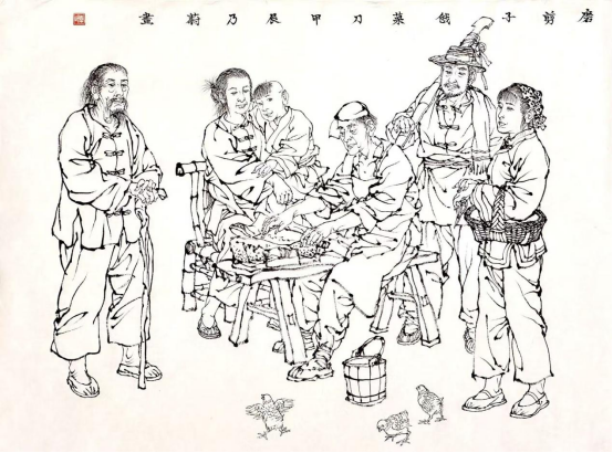 李乃蔚线描《磨剪子戗菜刀》2024年