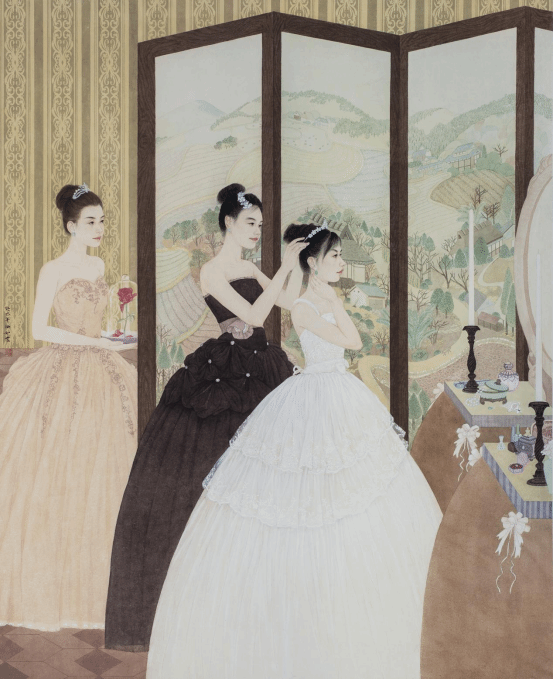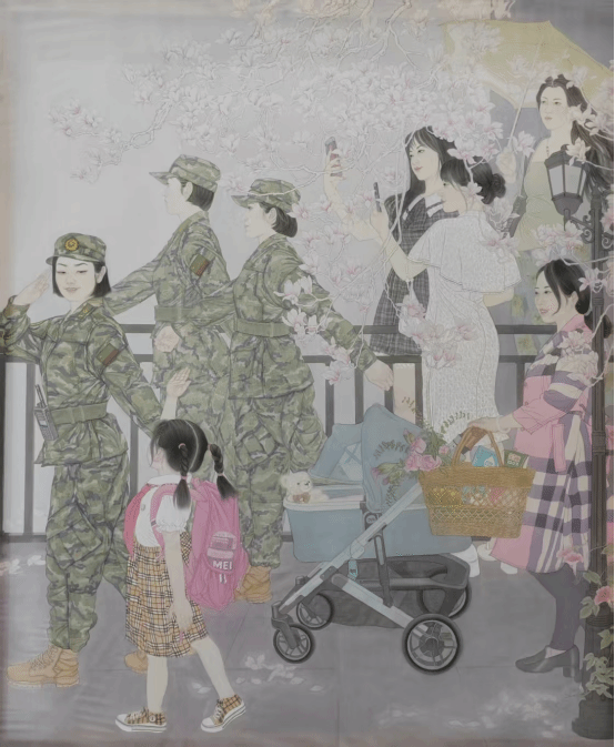 鄂宝莹《镜妆》纸本工笔 200cm×160cm