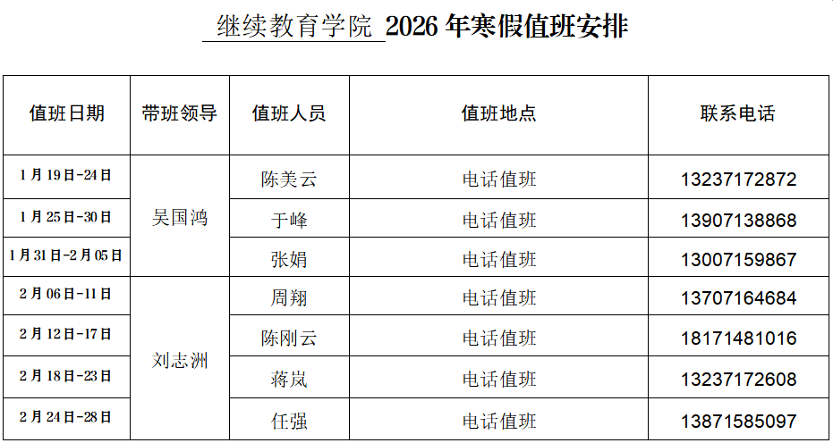 william威廉亚洲官方2026年寒假值班安排