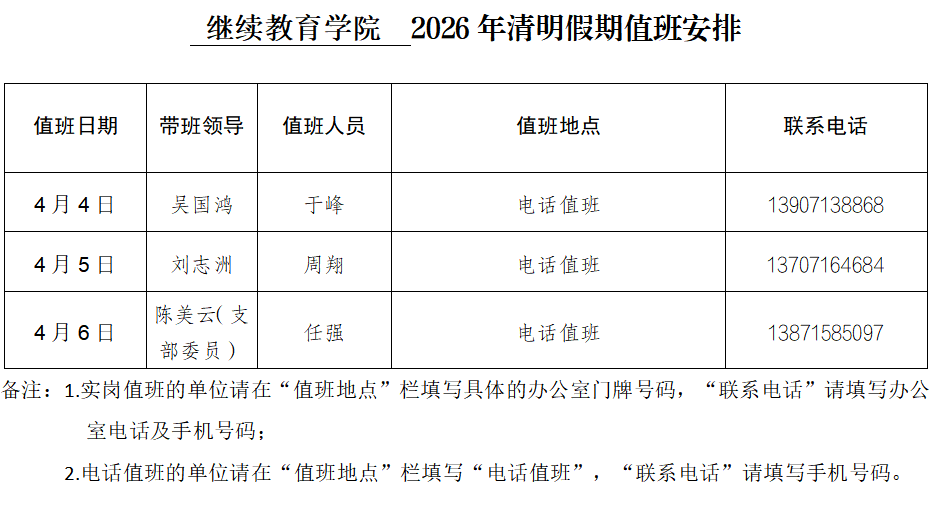 william威廉亚洲官方2026年清明假期值班安排