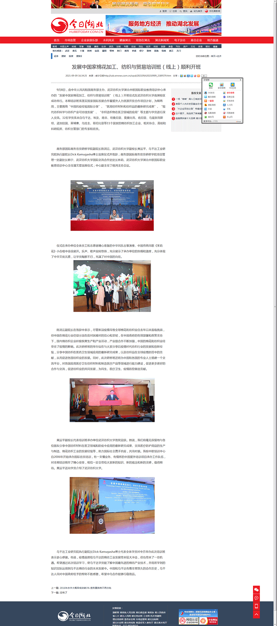 【今日湖北】发展中国家棉花加工、纺织与贸易培训班(线上)顺利开班