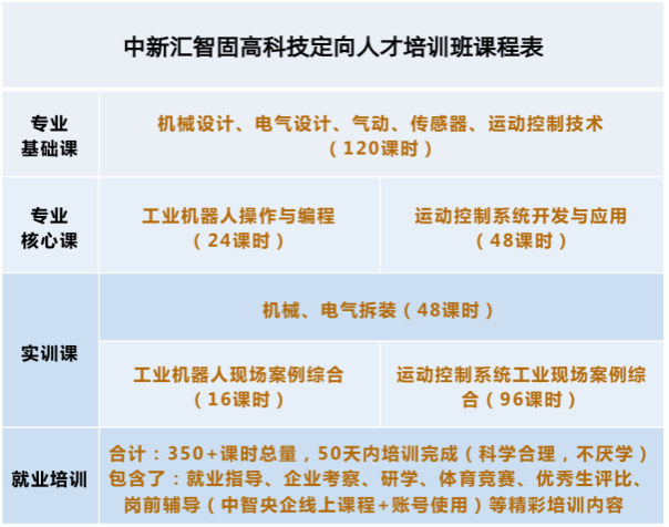 结合高等院校与固高科技的专业知识,以及中智的人力资源岗位匹配经验,研发出独有的课程体系。课程体系融入了固高科技公司多年的技术积累,固高公司已服务2000多家自动化装备公司和1000多家高校,技术实力雄厚。